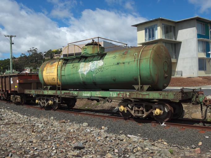 | Keywords: Tasrail-Tank-Wagon-20151211-002.jpg en Tasrail tank wagon TU 22 / E parked for the last few months near West Park Oval in Burnie 2015-12-10 23 22 03 URC own Gary Houston other versions -41 046164 145 901297 cc-zero Burnie Tasmania Tasrail Tank railway wagons of Australia Vehicles in Tasmania Graffiti on rolling stock Graffiti in Australia Uploaded with UploadWizard |