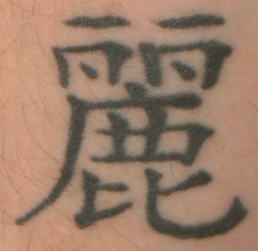 Keywords: Tattoo Glyph 麗.jpg 麗 198 8 A tattoo of Chinese character Radical 198 麗 beautiful lovely pretty fair; elegant Radical 198 Radical 鹿 Ž + 8 Own 2013-06-20 Sarang 사랑 Chinese glyph tattoos 麗