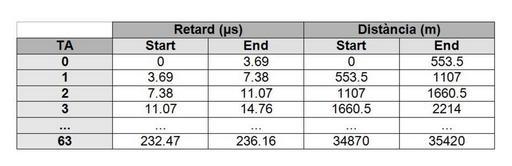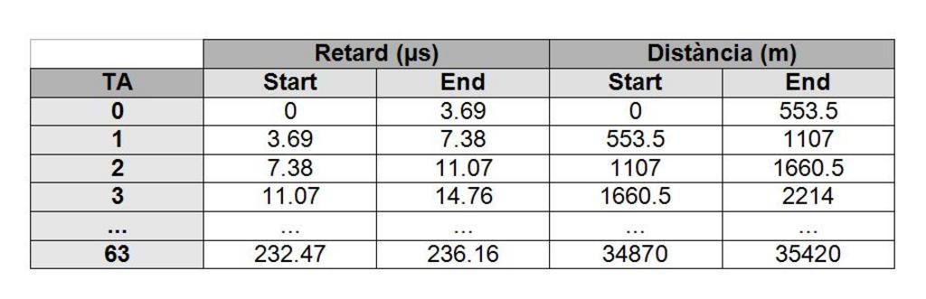 Keywords: TaulaDR.jpg ca Taula on es mostra la relació del TA en funció de la distància i el retard own CriSrsan Tables information