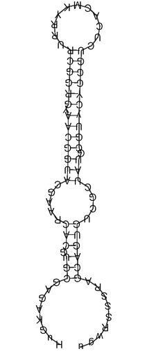 | Keywords: TB10Cs3H1 snoRNA.PNG en RNA secondary structure of TB10Cs3H1 generated by the WAR server http //genome ku dk/resources/war/pages/about php It is the consensus structure from 8 Trypansomatid species -Leishmania major Leishmania infantum Leishmania braziliensis Trypanosoma brucei Trypanosoma brucei gambiense Trypanosoma cruzi Trypanosoma congolense Trypansoma vivax --with some manual editing and redrawing of the structure with RNAplot from the Vienna RNA package own Ttd61300 Non-coding RNA Trypanosoma |