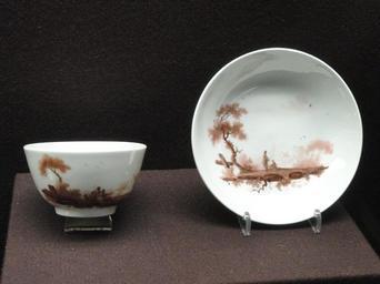 Keywords: Tea bowl and saucer, c. 1782-1787, New Hall, Shelton, Staffordshire, decorator attributed to Fidelle Duvivier, hybrid hard-paste porcelain, overglaze enamels - Gardiner Museum, Toronto - DSC00768.JPG Exhibit in the Gardiner Museum Toronto Ontario Canada This artwork is in the public domain because the artist died more than 70 years ago Photography was permitted in the museum without restriction Daderot 2012-10-16 15 14 33 Daderot cc0 cc0 New Hall porcelain in the Gardiner Museum Hard-paste porcelain |