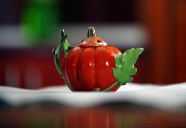 Keywords: tea-pot tea pumpkin china orange green kitchen colors figure collectible 19th century holland