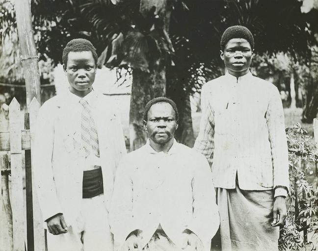 | Keywords: Teachers, Congo, ca. 1900-1915 (IMP-CSCNWW33-OS10-49).jpg Belgian Congo present day Democratic Republic of the Congo An older man wearing a jacket with a round collar sits at the centre of the image Two younger men stand next to him one at each side One man wears a round high collared jacket with a wrap around his waist and the other younger gentleman wears a suit and tie with a cumberbund around the waist This slide comes from a collection generated by missionaries working for the Congo Balolo Mission a mission begun in 1889 under the supervision of the East London Training Institute for Home and Foreign Missions that developed into the interdenominational evangelical mission Regions Beyond Missionary Union after 1900 Photographer Unknown Filename IMP-CSCNWW33-OS10-49 tif Coverage date 1900/1915 Subject unesco Teachers; Teaching profession Part of collection International Mission Photography Archive ca 1860-ca 1960 Part of subcollection Photographs from the Centre for the Study of World Christianity University of Edinburgh U K ca 1900-ca 1940s Subject corporate name Congo Balolo Mission Repository name Centre for the Study of World Christianity Archival file Volume2/IMP-CSCNWW33-OS10-49 tif Repository address The University of Edinburgh School of Divinity New College Mound Place Edinburgh EH1 2LX United Kingdom Geographic subject country Congo Format aacr2 lantern slides 8 2 x 8 2cm Geographic subject continent Africa Rights Contact the repository for details Part of series Regions Beyond Missionary Union Congo Lantern Slides CSCNWW33/OS10 Repository email divinity-CSWC ed ac uk Date created 1900/1915 Publisher of the digital version University of Southern California Libraries Subject aat genre group portraits Format aat lantern slides; photographs Access conditions http //www ed ac uk/schools-departments/divinity/research/centres/world-christianity/collections-resources Geographic subject educational facilities File CSCNWW33/OS10/49 Subject lcsh Christian teachers 1900/1915 date created author http //digitallibrary usc edu/cdm/ref/collection/p15799coll123/id/78062 PD-old-70-1923 Men of Africa 1910s People of the Democratic Republic of the Congo 1910s Education in the Democratic Republic of the Congo Congo-Balolo Mission 20th-century black and white portrait photographs of men at three-quarter length Magic lantern images Images from USC Digital Library uploaded by Fæ International Mission Photography Archive ca 1860-ca 1960 |