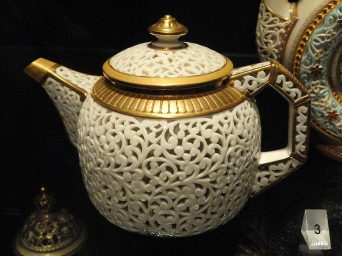 | Keywords: Teapot, George Grainger & Co., Worcester, England, c. 1885 - Royal Ontario Museum - DSC09506.JPG George Grainger 1783 - 1840 Tea pot pierced porcelain Exhibit in the Royal Ontario Museum Toronto Ontario Canada This exhibit is old enough so that it is in the public domain and photography was permitted in the museum I took this photograph and release it into the public domain Daderot 2011-11-20 16 26 52 Daderot cc0 cc0 Porcelain tea pots Worcester pottery Ceramic tea pots 19th-century ceramics George Grainger Miscellany in the Royal Ontario Museum Reticulated porcelain |