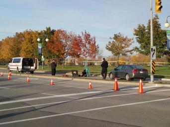Keywords: TechnicalCollisionInvestigation2.jpg en Police investigating a car accident in Markham ON Own Raysonho Open Grid Scheduler / Grid Engine 2008-10-17 Forensic science Road accidents Ontario Highway 7 in Markham York Regional Police