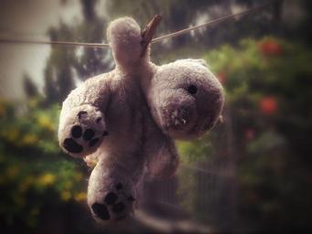 Keywords: teddy bear bear clothes line drying spring plush washed clothespin wire friend