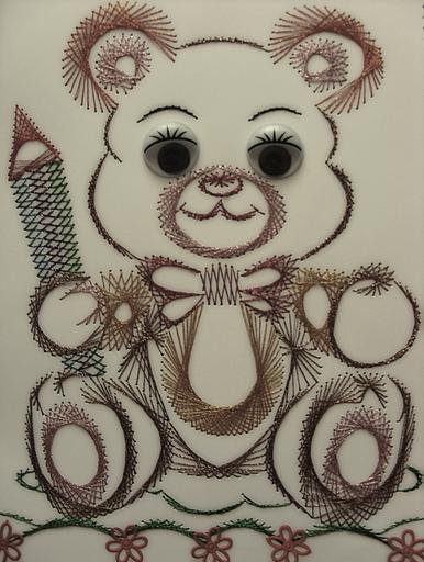 Keywords: teddy bear misiaczek image chit children a fairy tale embroidery character wishes fun teddy uszatek the silhouette sitting teddy bear colored needlework tapestry children's games coloring