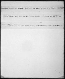 Keywords: Telegram from A.M. Barbour, Superintendent of the Arsenal at Harpers Ferry to the Secretary of War - NARA - 300374.jpg Scope and content On October 16 1859 John Brown and his army of some 20 men seized the federal arsenal at Harper's Ferry Virginia now West Virginia By the morning of October 18 Marines under the command of Bvt Col Robert E Lee stormed the building and captured Brown and the survivors of his party Even after Brown was captured false rumors persisted about abolitionists and slaves hiding in the mountains preparing for a new attack on the town It was in this atmosphere of panic as the Marines prepared to withdraw that the Superintendent sent this plea for help to the Secretary of War General notes Letters Received Main Series File W-386 Exhibit History American Originals December 1996 - December 1997 National Archives Rotunda Washington DC Exhibit No 624 0054 300374 Local identifier War Department The Adjutant General's Office 03/04/1907 - 09/18/1947 Archives I Reference Section Textual Archives Services Division NWCT1R National Archives Building 7th and Pennsylvania Avenue NW Washington DC 20408 1859-10-19 Record group Record Group 94 Records of the Adjutant General's Office 1762 - 1984 Record group ARC 423 Letters Received compiled 1805 - 1889 Series ARC 300368 File unit File unit ARC Variant control numbers NAIL Control Number NWCTB-94-CORRPI17E12-W386 1859 2<br /> NAIL Control Number NWDT1-94-CORR-PI17E12-W386 1859 2<br /> Other Identifier 03559<br /> This is the NARA internal exhibit tracking number Other versions <gallery> File Telegram_from_A M _Barbour _Superintendent_of_the_Arsenal_at_Harpers_Ferry_to_the_Secretary_of_War_-_NARA_-_300374 tif tif </gallery> NARA-cooperation PD-USGov Telegrams from the United States 1859 letters John Brown's raid on Harpers Ferry |