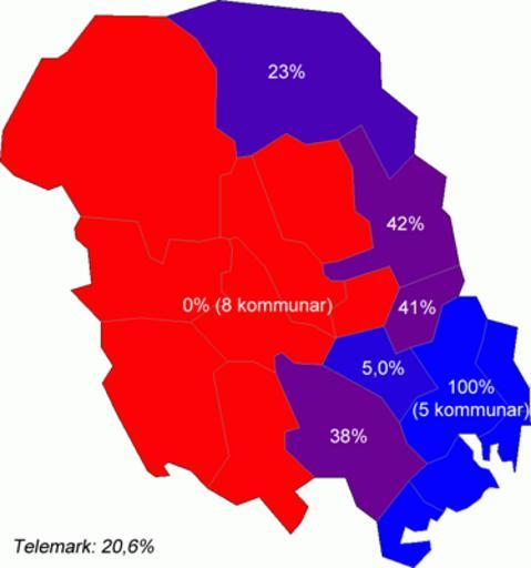 Keywords: Telemark-1992 Nynorsk.png en The proportion of nynorsk in primary schools in the municipalities of Telemark Norway in 1992 no Andelen nynorsk skolemål i kommunene i Telemark i 1992 own Eivindgh 2010-05-01 Data source Statistics Norway Statistisk sentralbyrå Map source Norwegian Mapping Authority Maps of Telemark Linguistic maps of Norway |