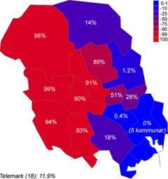 Keywords: Telemark-2009 Nynorsk.png en The proportion of nynorsk in primary schools in the municipalities of Telemark Norway in 2009 no Andelen nynorsk skolemål i kommunene på Telemark i 2009 own Eivindgh 2010-05-01 Data source Statistics Norway Statistisk sentralbyrå Map source Norwegian Mapping Authority Linguistic maps of Norway Maps of Telemark |