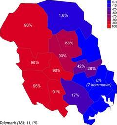 Keywords: Telemark-2010 Nynorsk.png en The proportion of nynorsk in primary schools in the municipalities of Telemark Norway in 2010 no Andelen nynorsk skolemål i kommunene i Telemark i 2010 own Eivindgh 2010-12-22 Data source Statistics Norway Statistisk sentralbyrå Map source Norwegian Mapping Authority Maps of Telemark Linguistic maps of Norway |