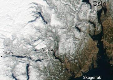 | Keywords: Telemarkkanal 1.jpg Titel Die Telemark mit dem Telemarkkanal Foto NASA März 2002 wie bei Dänemark <br/> original text 1 Um Skien lässt sich der Kanal erahnen Er führt dann in den Westen bis nach Dalen bzw zweigt in den Norden Richtung Norsjø ab Die breiteren Stellen sind die vorhandenen Seen die der Kanal verbindet de wikipedia 2004-05-06 Arne List wikipedia de Public Domain PD-USGov original upload log page de wikipedia Telemarkkanal jpg 2004-05-06 19 43 Arne List 723×513× 137584 bytes <nowiki>NASA-Foto nachbearbeitet</nowiki> Telemarkskanalen Satellite pictures of Norway |