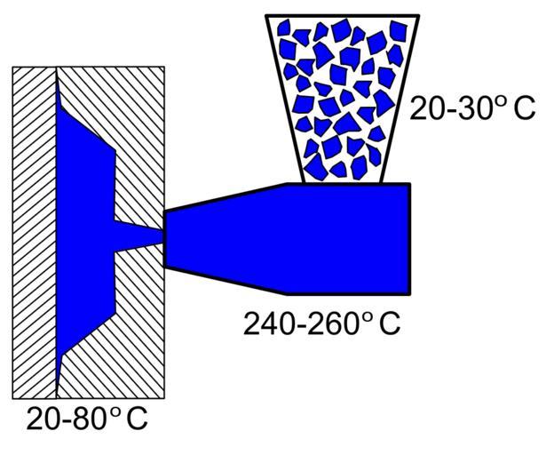 Keywords: Temperatures of injection moulding for polypropylene.svg Temperatures of injection moulding for polypropylene<br>Zakresy temperatur stosowane podczas wtryskiwania polipropylenu Own 2006-08-16 Stan Zurek Polypropylene Injection moulding Files by User Zureks Plastic granule |
