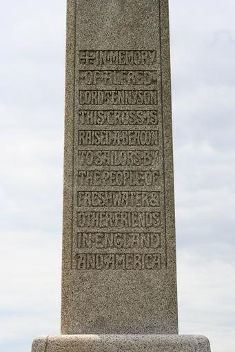 | Keywords: Tennyson Cross inscription.jpg Closeup of inscription on the east face of the Tennyson Cross on Tennyson Down Text of inscription In memory of Alfred Lord Tennyson this cross is raised a beacon to sailors by the people of Freshwater other friends in England and America Own 2007-07-10 Dave Pape PD-user Davepape Tennyson's monument English inscriptions Inscriptions in England | ||||