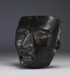 | Keywords: Teotihuacán - Face Plaque - Walters 296 - Three Quarter Left.jpg  This black limestone mask was carved by artists of the Teotihuacan culture centered at the ruined city of the same name in central Mexico Ancient Teotihuacanos fashioned masks in many mediums and at various scales from miniature ceramic works to over life-sized stone versions such as the present example Although this mask was hollowed out on the back the eyes were not prepared for viewing Instead they were partly drilled and originally inlaid with some kind of contrastive medium like shell obsidian magnetite or pyrite The fact that one cannot see through the eyes has led researchers to propose that masks like this were not worn as costume elements by the living Instead most writers believe that they were likely tied to mummy bundles or deity effigies The four drill holes found on this mask at each temple and below the ears were used to affix it to such a bundle The ear-like flanges are also drilled and would have originally had earrings pendant Along with feathers and beads masks were one of the most common costume elements of ancient Mesoamerican elites The reason has to do with the fact that ancient Amerindian belief as we now understand it was rooted in the ability of religious specialists---priests or perhaps even shamans to tap the power of the world of the gods and ancestors Like all Native Americans the ancient Teotihuacanos lived in a world of lesser and greater spirits or deities A major class of supernatural characters included those associated with nature natural processes and the landscape rain agriculture the sun moon seasons and the stars More hierarchical societies like Maya Aztec and Teotihuacan added deities associated with the ruling class Chiefs and kings and their families counted on the support of patron deities and they were figured prominently in the visual arts The people of Teotihuacan and other ancient Americans believed that wearing masks and costumes could actually effect a transformation or an assimilation of the individual's identity with that of the deity ancestor or animal featured on the mask Modern Westerners associate impersonation with theater Halloween and make believe Although we do find masks arresting few of us actually think that they transform their wearers But the Mayas and other Native-American peoples did believe in masked transformation This mask does not portray a known deity in the Teotihuacan pantheon Instead it represents a generic type perhaps an ideal elite Teotihuacan man The blank look large nose prominent cheekbones and drooping lip should be understood as artistic conventions rather than an attempt at likeness as portraiture AD 250-600 Early Classic limestone cm 16 3 10 3 15 accession number 29 6 38218 Museo Nacional de México date and mode of acquisition unknown Austen-Stokes Ancient Americas Foundation John Stokes as agent Walters Art Museum Gift of the Austen-Stokes Ancient Americas Foundation 2008 Art of the Ancient Americas The Walters Art Museum Baltimore 2002-2010 place of origin Teotihuacán in present-day Mexico Walters Art Museum license Mexican Pre-Columbian art in the Walters Art Museum Teotihuacan masks Limestone sculptures |