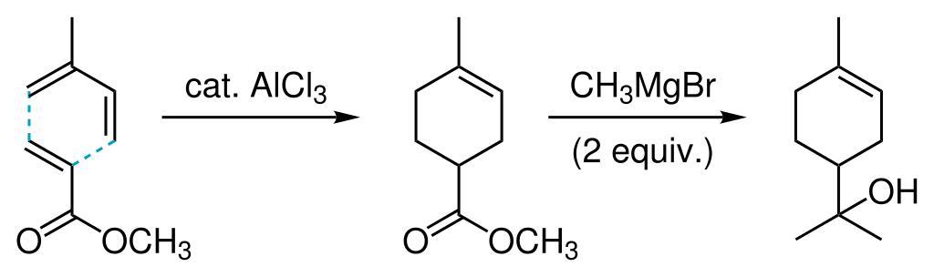 Keywords: Teprineol from isoprene and methyl acrylate.svg Preparatio of α-terpineol by Diels-Alder reaction of isoprene and methyl acrylate and Grignard reagent Own 2007-11-25 Calvero Diels-Alder reaction Grignard reactions Organic syntheses Terpineols Isoprene |