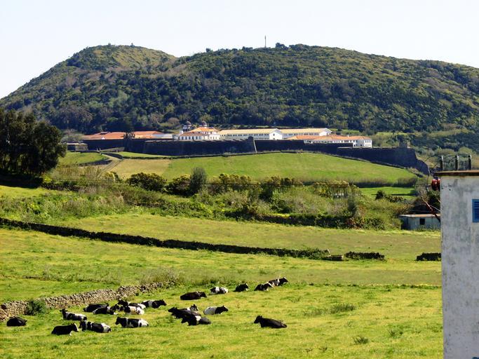 | Keywords: Terceira angra heroismo gado.JPG  pt Gado holandês raça Holstein no pasto Angra do Heroísmo ilha Terceira Açores ao fundo o Monte Brasil com a Fortaleza de São João Baptista own Carlos Luis M C da Cruz 2009-03-24 Fortaleza de São João Baptista do Monte Brasil Cattle in Portugal |