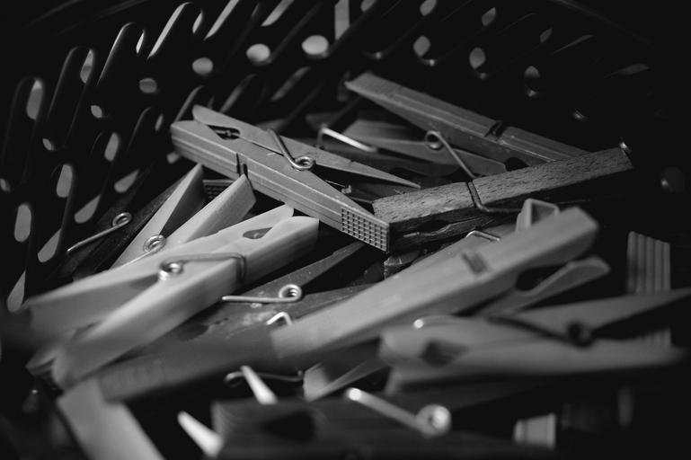 Keywords: terminals clothespin clips in basket black and white photography artistic