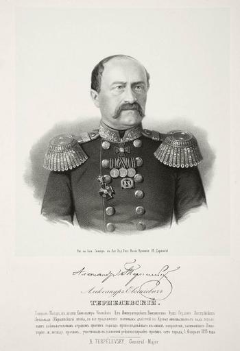 Keywords: Terpelevskij Alexandr Evgenievitch.jpg А Е Те пелевский По т еты лиц отличившихся заслугами и командовавших действующими частями в войне 1853-1856 годов СПб 1858-1861 Author before 1859 PD-Art Military people of the Crimean War Military people of the Russian Empire |