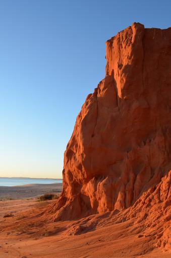 Keywords: terracotta cliff landscape beach sand ocean sea blue sky sunset sunlight seascape