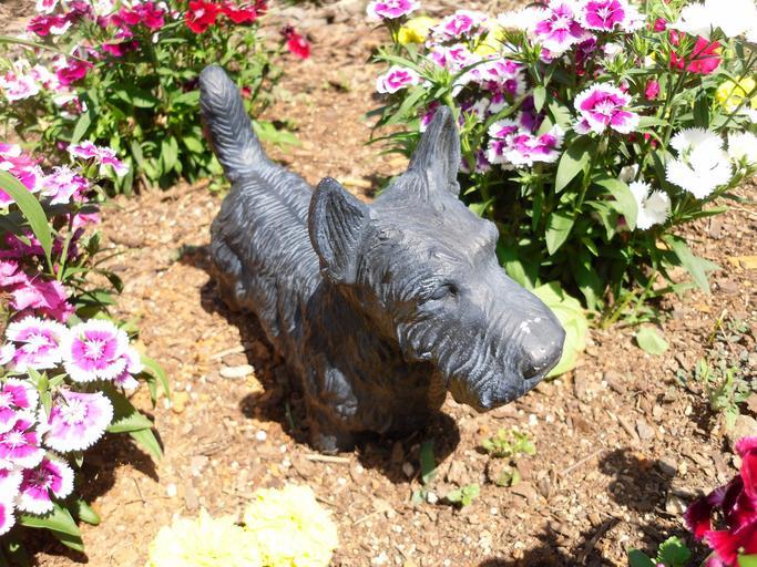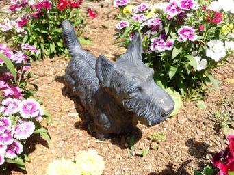 Keywords: terrier bronze statue scottish scottie dog flowers art garden