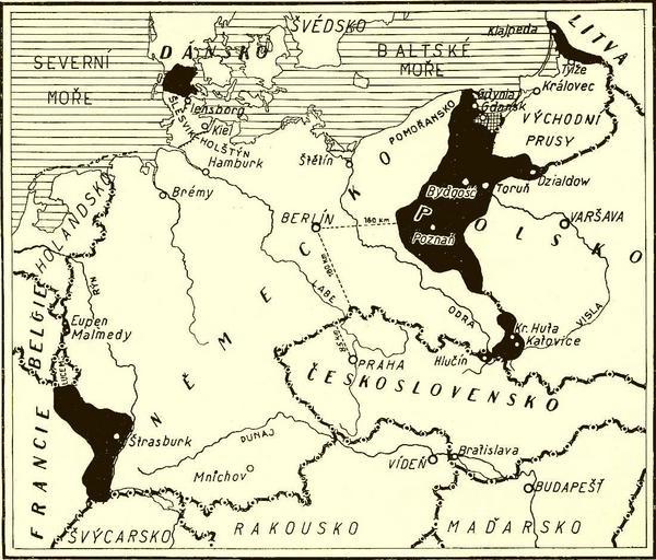 Keywords: Territorial losses of Germany.jpg s are in Czech Czech geographical magazine Zeměpisný měsíčník Širým světem ročník XIV 1937 author PD-Art Old maps of the German Empire Maps in Czech 1937 maps