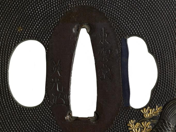 | Keywords: Terumitsu - Tsuba with a Carp - Walters 51188 - Mark.jpg The background of this tsuba is decorated in a beaded pattern known as fish eggs nanako-ji At the bottom a carp is depicted among aquatic plants The carp is an auspicious sign On the back are two tree stumps and grasses late 18th-early 19th century mid Edo shakudo gold copper cm 7 3 6 7 0 31 accession number 51 188 9923 Henry Walters Baltimore date and mode of acquisition unknown Walters Art Museum Henry Walters Acquired by Henry Walters Signature Toundô/Terumitsu place of origin Edo present-day Tokyo Japan Walters Art Museum license Tsuba in the Walters Art Museum Media contributed by the Walters Art Museum needs category review Terumitsu Media contributed by the Walters Art Museum needs artist update |