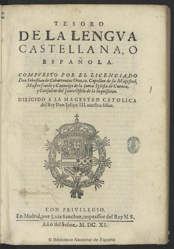 Keywords: Tesoro de la lengua castellana Covarrubias 1611.jpg es Tesoro de la lengua castellana o española Texto impreso / compuesto por Sebastian de Cobarrubias Orozco - En Madrid por Luis Sanchez 1611 - 10 602 79 1 h ; Fol - Signatura R/6388 1611 http //bdh bne es/bnesearch/detalle/bdh0000063534 - Biblioteca Digital Hispánica Biblioteca Nacional de España Covarrubias Orozco Sebastián de other versions BNE PD-old-100 Uploaded with UploadWizard Spanish language Books published in Madrid Books from Spain Title pages from Spain 1611 books |