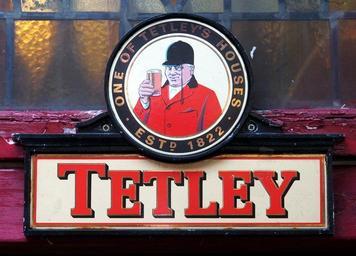 | Keywords: Tetley enamel beer advertising sign.JPG Photographed at the Bierreclame Museum Haagweg Breda The Netherlands Very old advertisment of a beer company or brand that does not exist any more own 2014-11-16 14 21 25 Alf van Beem CC-zero Trademarked Tetley's Bitter Bierreclame Museum Haagweg Enamel beer advertising signs |