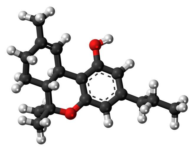 Keywords: Tetrahydrocannabivarin molecule ball.png Ball-and-stick model of the tetrahydrocannabivarin molecule also known as THCV or THV a compound with a similar structure to THC C H O 2015-05-31 own DS Visualizer Jynto more from this user Space-filling version cc-zero Images by Jynto Cannabinoids