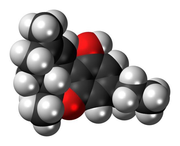 Keywords: Tetrahydrocannabivarin molecule spacefill.png Space-filling model of the tetrahydrocannabivarin molecule also known as THCV or THV a compound with a similar structure to THC C H O 2015-05-31 own DS Visualizer Jynto more from this user Ball-and-stick version cc-zero Images by Jynto Cannabinoids