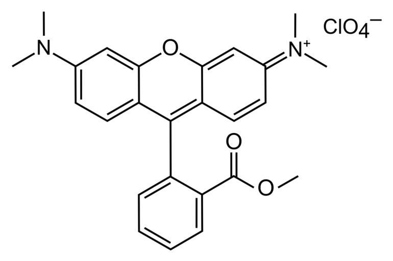 | Keywords: Tetramethylrhodamine methyl ester perchlorate.svg en The chemical structure of the fluorescent dye TMRM tetramethylrhodamine methyl ester perchlorate; C<sub>25</sub>H<sub>25</sub>N<sub>2</sub>O<sub>3</sub>·ClO<sub>4</sub> drawn using Inkscape own Ninjatacoshell 2011-03-22 Cc-zero Rhodamines |