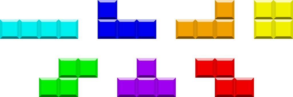 Keywords: Tetrominoes IJLO STZ Worlds.svg Tetrominoes in their Tetris Worlds colors which are the standard for Tetris since 2001 with beveled edges Top row I J L O Bottom row S T Z own work based on PNG version 15 39 14 November 2006 UTC Damian Yerrick uploader PD Tetrominoes don't need no stinkin' copyright Image Tetrominoes IJLO STZ Worlds png Yes the top row is <span style color 0cc >I</span> <span style color 00c >J</span> <span style color c80 >L</span> <span style color cc0 >O</span> not <s>I L J O</s> The <span style color 00c >J</span> and <span style color c80 >L</span> tetrominoes are named after their shape when resting on the side of length 2 The picture above shows them resting on the side of length 3 which is the orientation used by Tetris Worlds for each J L or T tetromino as it first enters the playfield Tetris pieces |