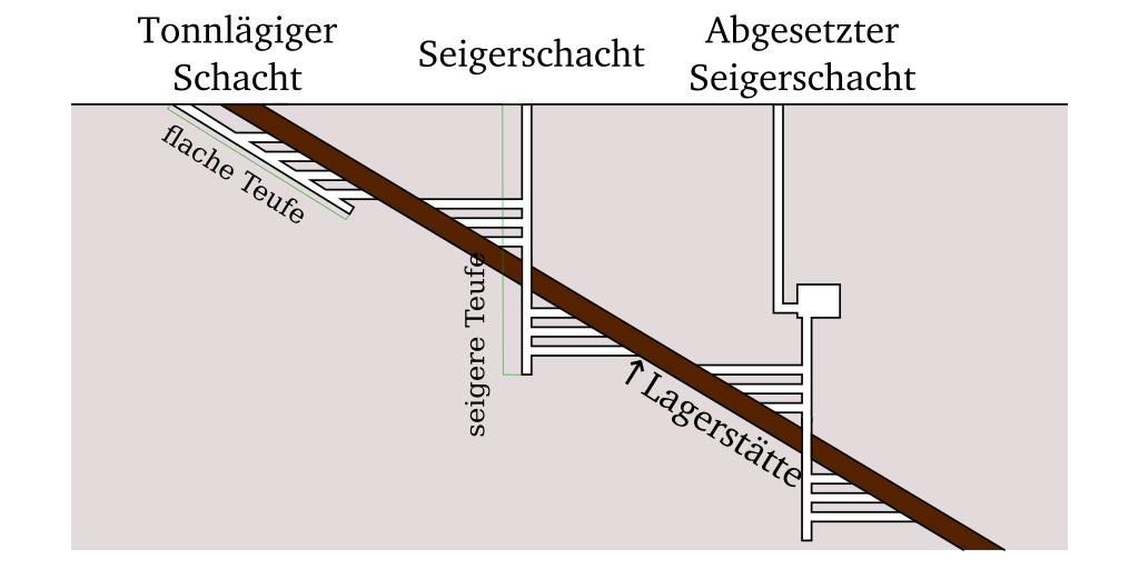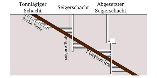 Keywords: Teufenbezeichnungen.svg Darstellung von flacher und Seigerteufe 2016-09-29 Arten von Tagesschächten svg 50 Arten von Tagesschächten svg Biezl derivative work Markscheider Mining schemas and diagrams Underground mining Diagrams in German