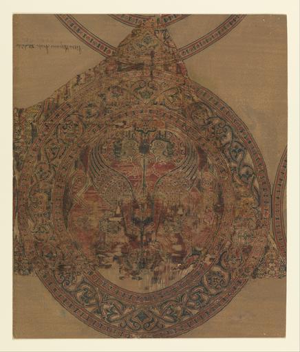 Keywords: Textile - Google Art Project.jpg 6938587 Unknown /collection/cooper-hewitt-national-design-museum/artwork/textile-unknown/5492244/ 11367 author /collection/cooper-hewitt-national-design-museum/ Cooper-Hewitt National Design Museum 3644669 http //www cooperhewitt org/ 3/11/2012 5 35 09 PM /collection/cooper-hewitt-national-design-museum/artwork/textile-unknown/5492244/ 1200 13th “15th century Medium silk gilded parchment on silk core board gouacheTechnique compound weave taquete ex-collection Francisco Miquel y Badía 318 5492244 False 1500 3/25/2012 5 04 27 AM 1902-1-216 http //collection cooperhewitt org/view/objects/asitem/id/11367 Gift of John Pierpont Morgan from the Badia Collection Textile 1200 1510 w330 x h318 cm 13th “15th century False 0 8515625 Object textile-unknown Textile t 330 Elsberg H A and Guest R Another silk fabric woven at Baghdad Burlington Magazine June 1934 page 271-72 Reath Nancy Andrews Weaves of Hand-loom Fabrics The History of Brocading The Pennsylvania Museum Philadelphia 1927 Page 53 Von Falke Otto Decorative Silks 3rd ed New York W Helburn Inc 1936 Fig 150 Sphinx tissue in Vich 12th century See also pages 22-23 Von Falke Otto Kunstgeschichte der Seidenweberei Verlag Ernst Wasmuth A G Berlin 1913 Fig 189 Sphinxenstoff in Vich 12 Jahrh See also page 117 Williams Leonard The Arts and Crafts of Older Spain page 19 Vol III T N Foulis London 1947 Historia General del Arte Historia del Mueble Tejido Bordado y Tapiz por D Francisco Miguel y Badia; Metalisteria Ceramica Vidrios por D Antonio Garcia Llanso Barcelona 1897 Fig 38 and Page 216 Shepherd Dorothy G Another Silk from the Tomb of Saint Bernard Calvo The Bulletin of the Cleveland Museum of Art April 1951 pages 74-75 H x W 31 8 x 33 cm 12 1/2 x 13 in Mount 45 7 x 61 cm 18 x 24 in New York Cooper-Hewitt National Design Museum Shahzia Sikander Selects Works from the Permanent Collection March 6 “September 7 2009 Medium silk gilded parchment on silk core board gouacheTechnique compound weave taquete ex-collection Francisco Miquel y Badía special url_id SQGz3jXkrvSMMg PD-old-100 Google Art Project works by unknown artist Textiles in the Cooper “Hewitt Smithsonian Design Museum Google Art Project works in Cooper-Hewitt Smithsonian Design Museum 13th-century textiles