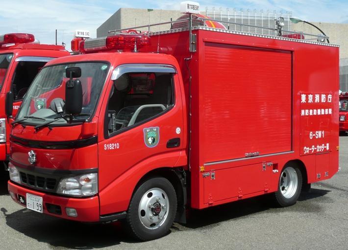 Keywords: TFD-watercutter.jpg 京消防庁のウォーターカッター車 own Photo by me 2008-08-30 Ypy31 Fire engines of Tokyo HINO Dutro 1st generation HINO fire engines Red fire engines