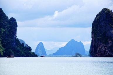 Keywords: thailand sea water holiday nature rock ship idyllic clouds atmospheric view sea island sky