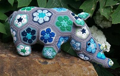 Keywords: thandi the rhinoceros african flower design heidi bears design crochet handmade yarn toy stuffed colorful fiber fiber arts handicraft craft