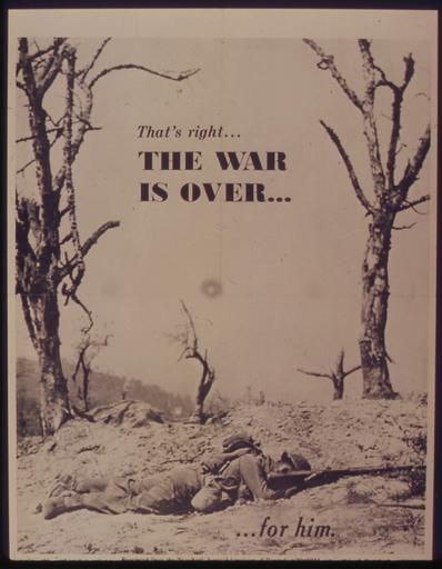 Keywords: THAT'S RIGHT... THE WAR IS OVER... FOR HIM - NARA - 515556.jpg Scope and content General notes This picture was taken on May 14 1944 Mother's Day Here is part of a letter Bill Allen wrote to his wife on May 15 1944 I came across this doughboy I had seen get it just about a half an hour before There he was his rifle in his hand the stock of it had been shattered by the same shell that got him He was not banged up much just around the neck but it was enough I looked at him for full two minutes before I could make a picture of him You know the thought that went through my mind It was May 14 Mother ™s Day and I got to thinking What a hell of a Mother ™s Day gift for his mother A couple of shells woke we me and reminded me that there was still a war going on so I made a couple of pictures of him and took off for the highway 515556 Local identifier 44-PA-1877 Office for Emergency Management Office of War Information Domestic Operations Branch Bureau of Special Services 03/09/1943 - 09/15/1945 Photograph by William C Allen AP War Correspondent Near the town of Minturno Italy Still Picture Records Section Special Media Archives Services Division NWCS-S National Archives at College Park 8601 Adelphi Road College Park MD 20740-6001 1941 - 1945 Mother's Day May 14 1944 Record group Record Group 44 Records of the Office of Government Reports 1932 - 1947 Record group ARC 373 World War II Posters compiled 1942 - 1945 Series ARC 513498 File unit File unit ARC Variant control numbers NAIL Control Number NWDNS-44-PA-1877 Other versions <gallery> File THAT'S_RIGHT _THE_WAR_IS_OVER _FOR_HIM_-_NARA_-_515556 tif tif File THAT'S_RIGHT _THE_WAR_IS_OVER _FOR_HIM_-_NARA_-_515556 jpg jpg </gallery> NARA-cooperation PD-USGov World War II posters from the United States |