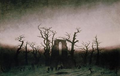 | Keywords: The Abbey in the Oakwood.jpg Artwork Creator Caspar David Friedrich between 1809 1810 Oil on canvas size cm 110 4 171 Alte Nationalgalerie 3 06 02531364 object history 1810 durch Kronprinz Friedrich Wilhelm aus der Berliner Akademie-Ausstellung erworben; bis 1837 im Palais Friedrich Wilhelms III Unter den Linden 1837-44 im Neuen Palais in Potsdam 1844-65 im Schloß Bellevue später im Schloß Wiesbaden; nach 1906 im Berliner Stadtschloß; seit 1957 Eigentum der SMPK credit line accession number NG 8/85 1 Transferred from http //en wikipedia org en wikipedia by User Dcoetzee originally uploaded by Ceoil at http //en wikipedia org en wikipedia from http //picasaweb google com/FAMILY SEGUI VILAR/TributeToCasparDavidFriedrich/photo 5045094746352968354 picasaweb google com on 2008 03 08 <br/>2 5335 PD-old-100-1923 1840 Original upload log page en wikipedia The_Abbey_in_the_Oakwood jpg 2008-03-08 12 36 Ceoil 720×461× 78104 bytes <nowiki> http //picasaweb google com/FAMILY SEGUI VILAR/TributeToCasparDavidFriedrich/photo 5045094746352968354 1808-1810 Berlin Nationalgalerie Staaliche Museen zu Berlin Caspar David Friedri</nowiki> DEFAULTSORT Caspar David Friedrich Abtei im Eichwald Abtei im Eichwald |