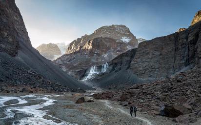Keywords: the andes mountaineering dawn frozen river valley