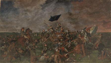 | Keywords: The Battle of San Jacinto (1901).jpg  Artwork Creator Henry Arthur McArdle Artistic interpretation of the Battle of San Jacinto Caption COURTESY OF HERITAGE AUCTIONS The Battle of San Jacinto created in 1901 by H A McArdle of San Antonio is a smaller version of the mural he painted in the Texas Capitol 1901 Oil on canvas cm 121 9 213 4 object history H A McArdle;<br/>By descent to Marie McArdle;<br/>By descent to George Bland;<br/>By descent to Elisabeth Bland 1 http //media star-telegram com/smedia/2010/03/27/23/0328_bud_bulldog ART_GUU12A50M 1+San_Jacinto_painting standalone prod_affiliate 58 jpg image and http //www star-telegram com/2010/03/27/2071797/long-lost-texas-artwork-is-discovered html news article Bud Kennedy Long-lost Texas artwork is discovered Fort Worth Star-Telegram 2010-03-27<br/>2 http //fineart ha com/itm/fine-art-painting/henry-arthur-harry-mcardle-american-1836-1908-the-battle-of-san-jacinto-1901-oil-on-canvas/a/5050-76013 s Heritage Auctions Nov 20 2010 lot 76013 Other versions PD-old-100 Henry Arthur McArdle Battle of San Jacinto 1901 paintings McArdle Paintings of battles 1836 Images from Heritage Auctions Paintings of Texas |