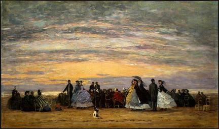 | Keywords: The Beach at Villerville, Eugène Boudin, 1864.jpg Artwork Creator Eugène Boudin La plage à Villerville The Beach at Villerville 1864 Oil on canvas cm 45 7 76 3 National Gallery of Art E Boudin _ 64 ~ lower right signature object history From http //www nga gov/fcgi-bin/tinfo_f object 46479 detail prov National Gallery of Art <br> Acquired in Boston or New York 1866 as Beach near Scheveningen by Dr Henry Clay Angell d 1911 Boston; by inheritance to his wife Martha Bartlett Angell d 1919 Boston; gift 1916 to the Museum of Fine Arts Boston;1 1950 to E and A Silberman Galleries New York ;2 sold 1951 to Chester Dale 1883-1962 New York;3 bequest 1963 to NGA 1Accession no 19 99 gift of Angell made in 1916 but not accessioned by museum until 1919 See Museum of Fine Arts Bulletin XVII no 101 June 1919 on the Angell gift 2 In partial purchase and exchange for Boston MFA 50 2716 3Invoice dated 21 May 1951 to Chester Dale from E and A Silberman Galleries in NGA curatorial files credit line National Gallery of Art http //www nga gov/collection/sfp/flash/image_movs/early/1963_10_4-zoom htm PD-old-100 Normandy by Eugène Boudin 1864 paintings Impressionist paintings in the National Gallery of Art Beach of Villerville Fashion in 1864 Beaches of France in art Villerville |