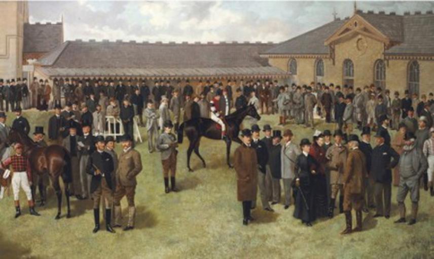 | Keywords: The Birdcage at Newmarket on 2000 Guineas Day.jpg en Painting 1885 by Lowes Cato Dickinson 1819-1908 showing various racing characters surrounding the racehorse Paradox Artist dead for 104 years 2011-08-27 Photohostory Sussexhttp //www photohistory-sussex co uk/BtnDickinsonBros htm Lowes Cato Dickinson 1819-1908 PD-Art Uploaded with UploadWizard Famous race horses Lowes Cato Dickinson | ||||