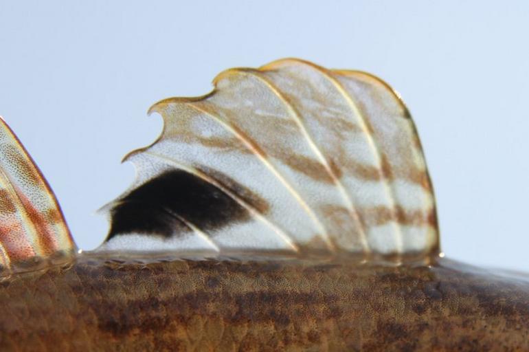 | Keywords: The black spot on the first back is characteristic for the neogobius melanostomus.JPG en The black spot on the first back is characteristic for the Neogobius melanostomus nl De zwarte vlek op de eerste rugvin is kenmerkend voor de zwartbekgrondel own Peter van der Sluijs 2012-05-19 Round goby fins Invasive fishes Cc-zero | ||||