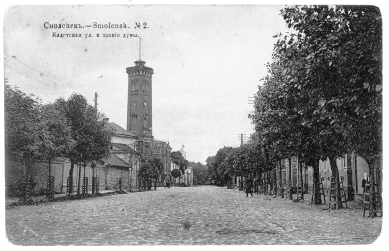 Keywords: The Cadet street 2.jpg en Cadet Street now - Communist In the background - the building of City Council ru Улица Кадетская ныне - Коммунистическая а заднем плане - здание го одской думы О игинальная отк ытка е установлены before 1917 года PD-RusEmpire 20th-century postcards Postcards of Smolensk