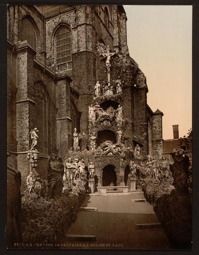 | Keywords: The Calvary, St. Paul's Church, Antwerp, Belgium WDL4147.png Artwork ru Распятие на Голгофе це ковь Св Павла Антве пен Бельгия fr Le Calvaire église St Paul Anvers Belgique en The Calvary St Paul's Church Antwerp Belgium zh 安特卫普 罗教堂 稣 堂 pt O Calvário Igreja de St Paul Antuérpia Bélgica ar شركة الجلجثة، كنيسة سانت بولس، أنتويرب، بلجيكا ru Данный цветной фотоснимок це кви Св Павла в Антве пене относится к азделу Виды а хитекту ных и иных памятных мест Бельгии каталога выпущенного Дет ойт Паблишинг Кампани 1905 г Це ковь Святого Павла была пост оена в 1540-1571 годы на месте ста ой це кви XIII века кото ой постоянно г озило затопление Пост оенная в готическом стиле це ковь славится своими многочисленными статуями многие из кото ых изоб ажают Голгофу место аспятия Иисуса Х иста с одной сто оны це кви Данная композиция состоящая из более чем 60 скульпту и статуй ассказывает о последних днях жизни Иисуса Х иста В издании Бедеке а Бельгия и Голландия включая Великое Ге цогство Люксембу г 1905 г это скульпту ное изоб ажение Голгофы описывается как искусственное возвышение пок ытое камнями и шлаком на кото ом асположены статуи святых ангелов п о оков и пат иа хов; этот искусственный холм увенчан аспятием Г от внизу символизи ует Г об Господень в Ие усалиме <br>А хитекту ные ук ашения и деко ативные элементы; А хитекту а готическая; Це кви; Распятие Х иста; Статуи fr Cette impression photochrome de l'église Saint-Paul à Anvers fait partie des Vues de l'architecture et d'autres sites en Belgique du catalogue de la Detroit Publishing Company 1905 L'église Saint Paul a été construite en 1540 71 sur le site d'une ancienne église du 13ème siècle qui avait été constamment menacée par les inondations L'église de style gothique est connue pour ses nombreuses sculptures dont beaucoup sont présentées dans la représentation du Calvaire le site où Jésus fut crucifié sur un flanc de l'église Cette composition qui consiste en plus de 60 sculptures et statues raconte les derniers jours de la vie de Jésus L'ouvrage de Baedeker <em>La Belgique et la Hollande y compris le Grand-Duché du Luxembourg</em> 1905 décrit le calvaire comme un mont artificiel recouvert de morceaux de roche et de laitier garni de statues de saints d'anges de prophètes et de patriarches surmonté d'un crucifix La grotte ci-dessous est destinée à représenter le Saint-Sépulcre à Jérusalem <br>Décorations et ornements architecturaux; Architecture gothique; Églises; Crucifixion du Christ; Statues en This photochrome print of St Paul s Church in Antwerp is part of Views of Architecture and Other Sites in Belgium from the catalog of the Detroit Publishing Company 1905 The Church of Saint Paul was built in 1540 71 on the site of a former 13th-century church that had been continually threatened by flooding The Gothic-style church is known for its numerous sculptures many of which are featured in the depiction of Calvary the site where Jesus was crucified on one side of the church This composition which consists of more than 60 sculptures and statues recounts the last days of the life of Jesus Baedeker s <em>Belgium and Holland including the Grand-Duchy of Luxembourg</em> 1905 described the Calvary as an artificial mount covered with pieces of rock and slag garnished with statues of saints angels prophets and patriarchs and surmounted by a crucifix The grotto below is intended to represent the Holy Sepulchre at Jerusalem <br>Architectural decorations and ornaments; Architecture Gothic; Churches; Crucifixion of the Christ; Statues zh 这张安特卫普 罗教堂的彩色照片是底特律出版公司 1905 书目中 比利时建筑和其他遗 风光 的 个部分 罗教堂于1540-71年 间 座13世纪教堂的基 上建 起 ,这座以前的教堂 直饱受洪水的侵袭 这座哥特式教堂因其大量的雕塑 闻名,其中许多都用于表现教堂 侧的 稣 稣 堂, 堂中, 稣被钉于十字架上 这座建筑具 60多座雕刻和塑像,重述了 稣生命 后的那段时间 德克尔的 比利时 荷兰和卢森堡大公国旅行指南 1905 这样描述 稣 堂 人类劳动的结晶,覆盖 石 和渣 ,装饰 人 天使 先知和宗主的雕塑,这 切都处于 稣受难像的福泽之下 下 的洞室意 代表 路撒冷的 墓 <br>建筑装饰与饰品; 哥特式建筑; 教堂; 稣受难; 雕像 pt Esta impressão fotocrômica da Igreja de St Paul em Antuérpia é parte de Vistas de Arquitetura e de Outros Locais da Bélgica do catálogo da Detroit Publishing Company 1905 A Igreja de Saint Paul foi construída em 1540-71 no local de uma antiga igreja do século XII que fora constantemente ameaçada por inundações A igreja de estilo gótic é conhecida por suas numerosas esculturas muitas das quais são destacadas na representação do Calvário o local onde Jesus foi crucificado em um lado da igreja Esta composição que consiste em mais de 60 esculturas e estátuas narra os últimos dias da vida de Jesus <em>A Bélgica e Holanda incluindo o Grão-Ducado de Luxemburgo </em> 1905 de Ba