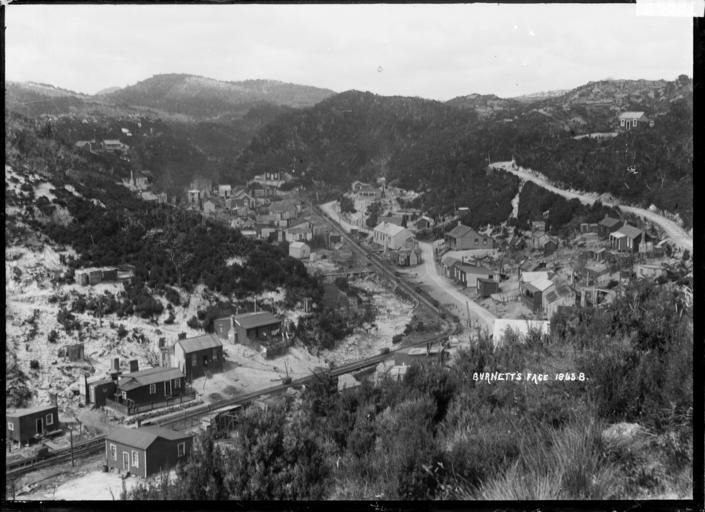 Keywords: blackandwhite monochrome outdoor landscape hill mountainside black and white Looking down over the coal mining township of Burnett's Face. The cable roperoad for carrying coal trucks from the mines near Burnett's Face to the brakehead at Deeniston can be seen passing through the town. The road to Denniston winds up the hill on the right. Photographed by William Archer Price, circa 1910 Inscriptions: Inscribed - Photographer's title on negative -bottom right: Burnett's Face. 1863.B. Quantity: 1 b&w original negative(s). Physical Description: Glass negative The coal-mining settlement of Burnett's Face, near Denniston. Price, William Archer, 1866-1948 :Collection of post card negatives. Ref: 1/2-001899-G. Alexander Turnbull Library, Wellington, New Zealand. natlib.govt.nz/records/22873908 Looking down over the coal mining township of Burnett's Face. The cable roperoad for carrying coal trucks from the mines near Burnett's Face to the brakehead at Deeniston can be seen passing through the town. The road to Denniston winds up the hill on the right. Photographed by William Archer Price, circa 1910 Inscriptions: Inscribed - Photographer's title on negative -bottom right: Burnett's Face. 1863.B. Quantity: 1 b&w original negative(s). Physical Description: Glass negative The coal-mining settlement of Burnett's Face, near Denniston. Price, William Archer, 1866-1948 :Collection of post card negatives. Ref: 1/2-001899-G. Alexander Turnbull Library, Wellington, New Zealand. natlib.govt.nz/records/22873908 |