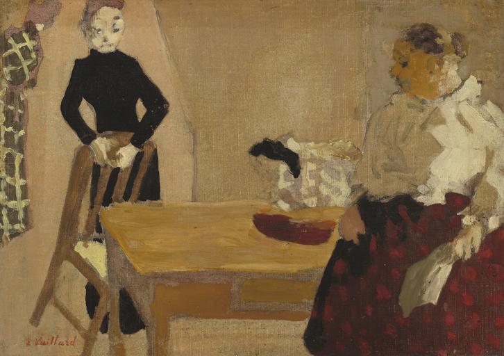 Keywords: The Conversation A21244.jpg artwork creator Edouard Vuillard French 1868 - 1940 The Conversation Q20190252 1891 oil on canvas overall 23 8 x 33 4 cm 9 3/8 x 13 1/8 in framed 46 2 x 55 2 x 6 9 cm 18 3/16 x 21 3/4 x 2 11/16 in Ailsa Mellon Bruce Collection accession number 1970 17 92 http //www nga gov/content/ngaweb/Collection/art-object-page 52236 html institution National Gallery of Art PD-old Édouard Vuillard Collections of the National Gallery of Art Uploaded with VicuñaUploader |