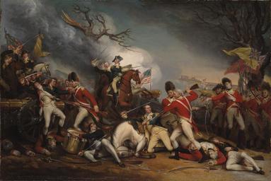| Keywords: The Death of General Mercer at the Battle of Princeton January 3 1777.jpeg The Death of General Mercer at the Battle of Princeton January 3 1777 displays several events at the Battle of Princeton At the center American General Hugh Mercer with his horse beneath him is mortally wounded At the left American Daniel Neil is bayoneted against a cannon At the right British Captain William Leslie British Army officer William Leslie is shown mortally wounded In the background American General George Washington and Doctor Benjamin Rush enter the scene Oil Canvas cm 51 1 75 9 Institution Yale University Art Gallery http //artgallery yale edu/collections/objects/101 Yale University Art Gallery Creator John Trumbull 1787 “ 1831 http //siris-artinventories si edu/ipac20/ipac jsp menu search aspect Keyword term IAP+07260646 index NW Smithsonian Art Inventory Catalog IAP 07260646 http //search openlibrary artstor org/object/AYALEARTIG_10312577019 Yale University Art Galley Descriptive data https //books google com/books id Oreq1YztDcQC pg PA333 Washington's Crossing by David Hackett Fischer p 333 accession number 1832 6 1 Q21886069 The Death of General Mercer at the Battle of Princeton by John Trumbull PD-old-100 |